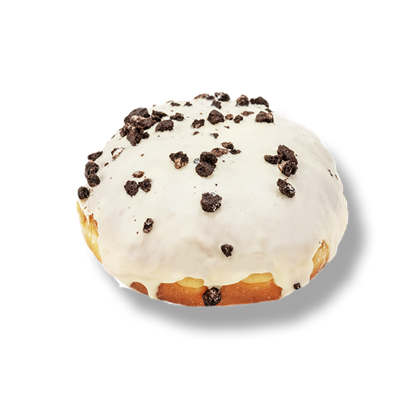 Donut με λευκή κρέμα, επικάλυψη σοκολάτας και μπισκότου Oreo.