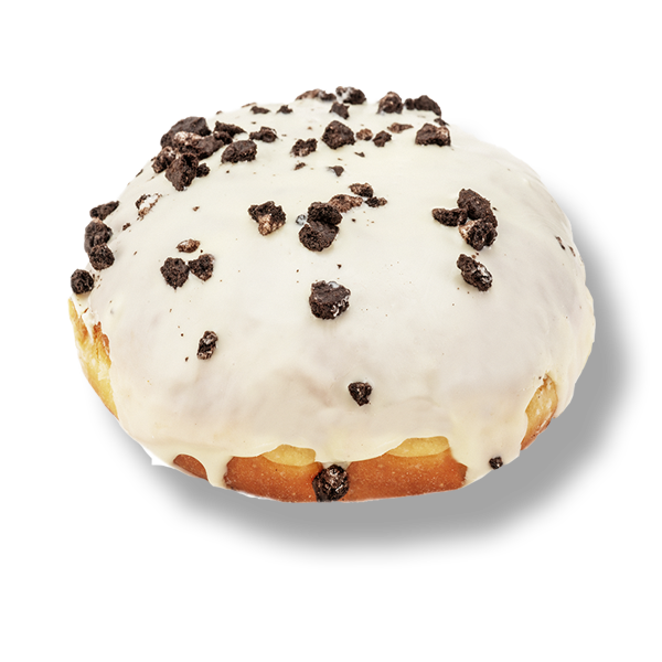 Donut με λευκή κρέμα, επικάλυψη σοκολάτας και μπισκότου Oreo.